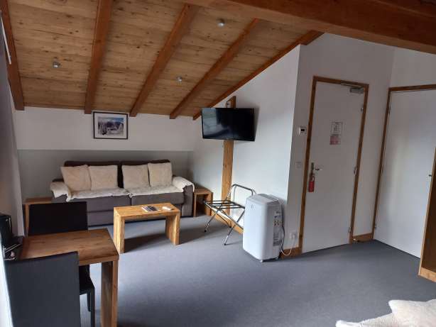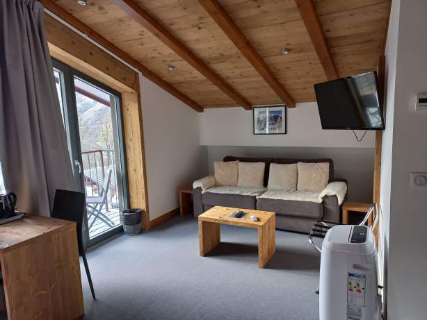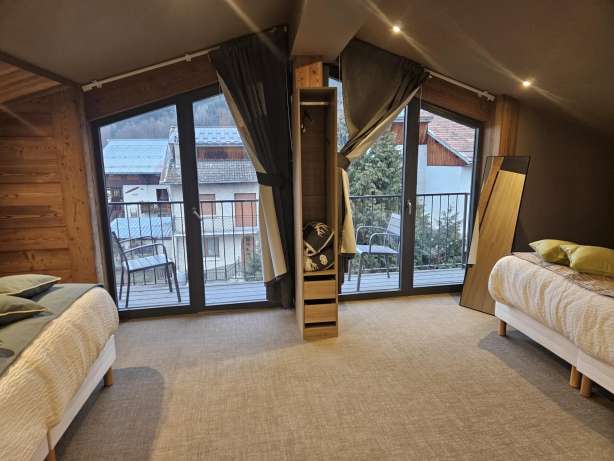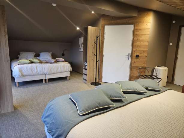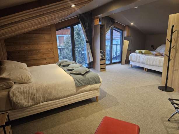 Agréable et spacieuse, la chambre familiale de l’hôtel l’Alpin saura vous combler. Un grand balcon avec vue sur le Mont Blanc et les jardins de Landry est idéale pour le café du matin. Un petit coin pour les jeux de société en famille est à côté de la télé pour des moment de partage. Elle dispose de 2 grand lits ou 4 lits simple ou 1 grand lit et 2 lits simple. Possibilité également de mettre 1 lit d’appoint.