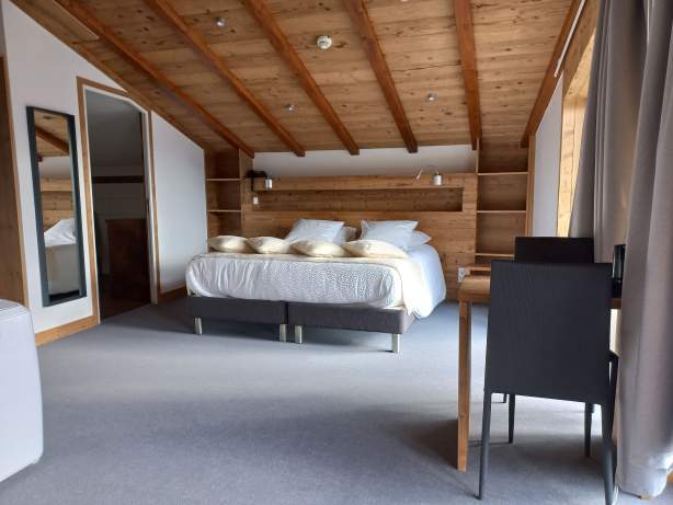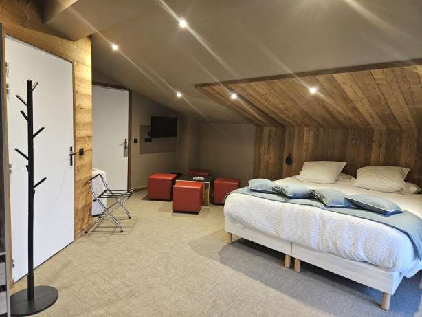 Spacieux écrin de confort, la chambre double de l'hôtel l'Alpin invite à la décontraction après une journée d’efforts et de découvertes en montagne. Cosy et délicate, la chambre peut accueillir 2 à 3 personnes et dispose d’un grand dressing mais aussi d’une TV écran plat et d’une connexion Wifi gratuite. La chambre double est idéale pour une escapade romantique ou familiale au cœur de la Savoie.
