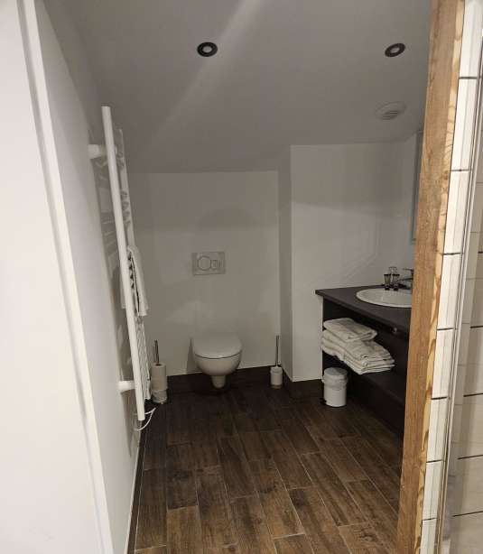 Dans cette chambre il y a une douche, 1 toilette, WIFI gratuite, 1 écran plat, 1 petit coin cosy.
